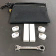 The Leveling Kit provides Keysteps to support sample keys, which in turn support a straightedge for key leveling. Referencing case parts and keypins, decide on and preset heights for the outermost naturals by inserting cut balance punchings with tweezers. Remove frontrail punchings from sample keys and slip on the Keysteps, turning them up to just touch their keys (now these keys will be level when the rest of the keys have been leveled and the Keysteps are removed). For leveling the sharps, add a Rocke Sharp Leveling Gauge to Keystep-supported 1 and 88, choose one of five heights from 15/32" to 1/2" (12mm to 12.7mm), and add straightedge. The tools in this kit are included in the Leveling-Sampling Kit. The Rocke Sharp Leveling Blocks are also available on their own by the pair.